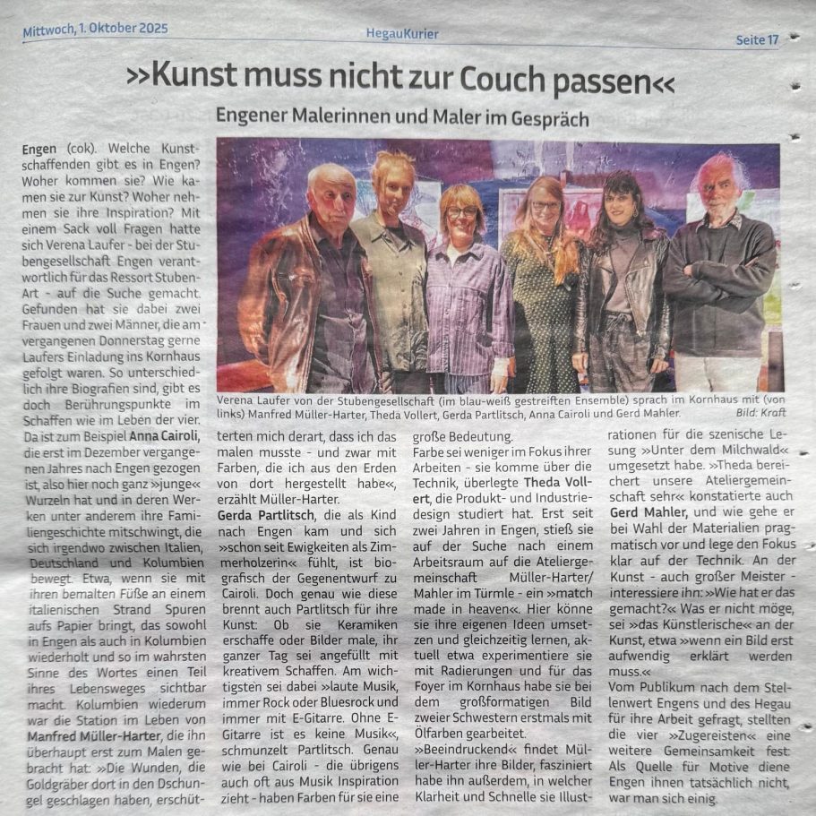 Hegau Kurier Nr 40; 1. Oktober 2025. "Kunst muss nicht zur Couch passen".