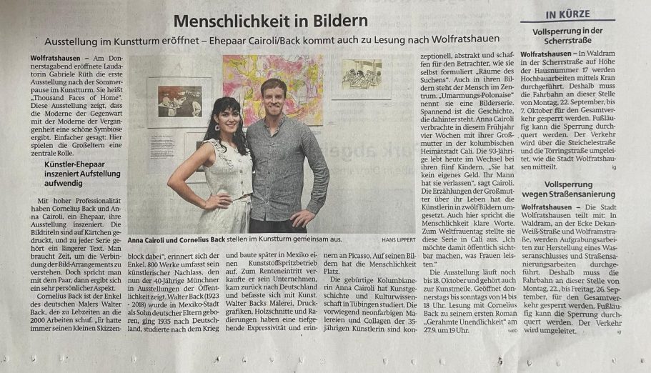 Oberland Magazin 23. September 2025 "Neue Ausstellung im Kunstturm Wolfratshausen". https://www.oberland.de/magazin/kultur/wolfratshausen/gegenwart-und-vergangenheit